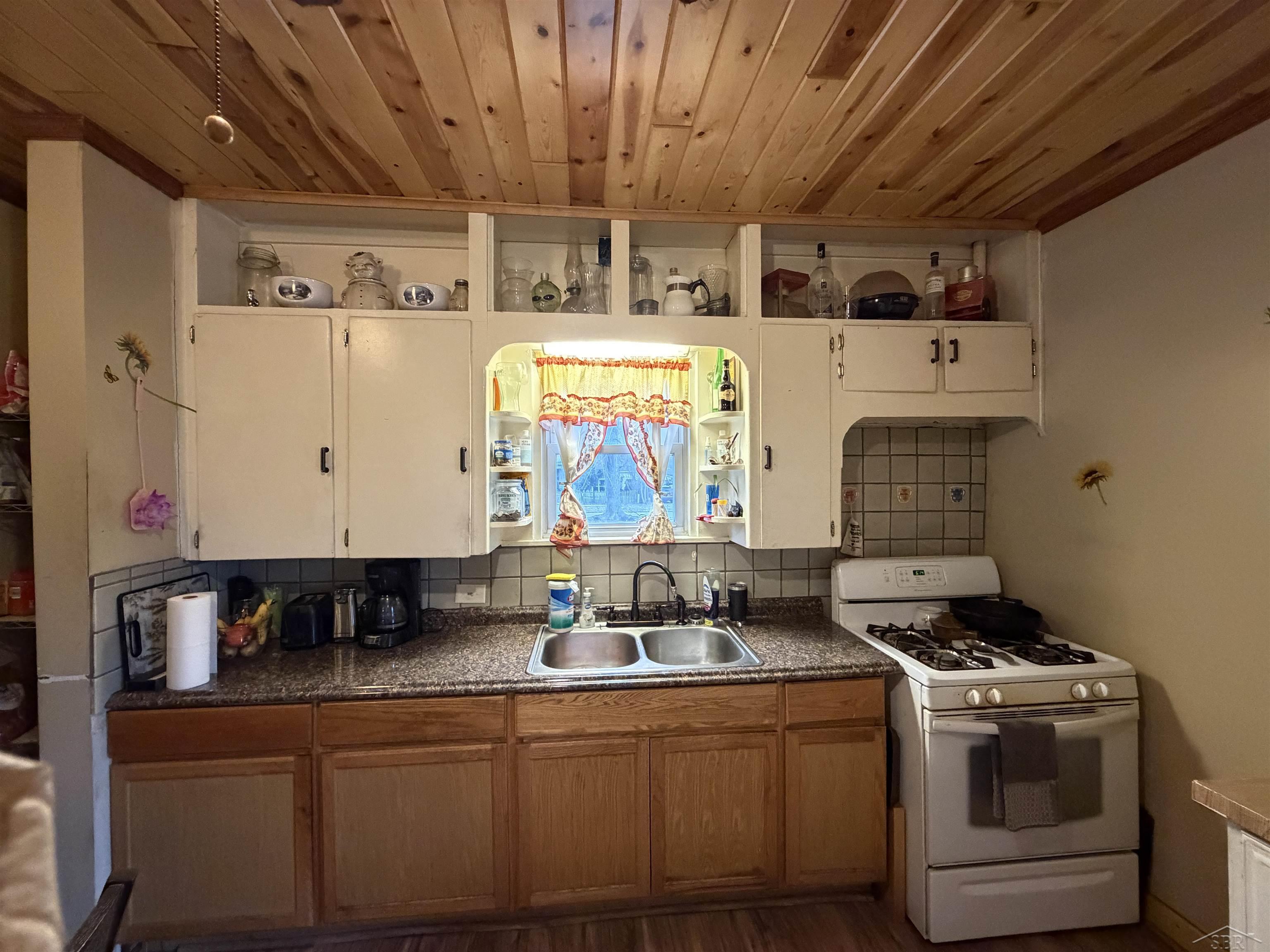 Charming and well-maintained 3 bedroom home situated on 3 lots, offering extra privacy with no neighbors on either side. Features a beautiful hand-crafted wood ceiling in the kitchen, adding warmth and character to the space. Enjoy outdoor living on the large back deck-perfect for entertaining. Home also incudes a tankless water heater for efficiency and a lifetime metal roof on the garage and back deck for long lasting durability.