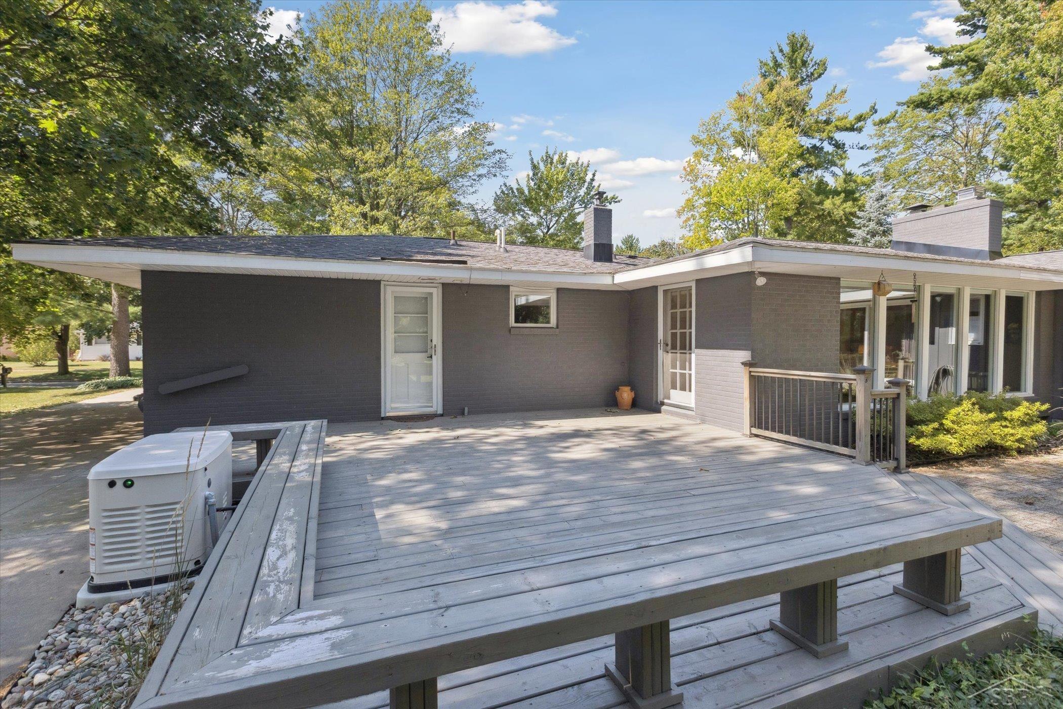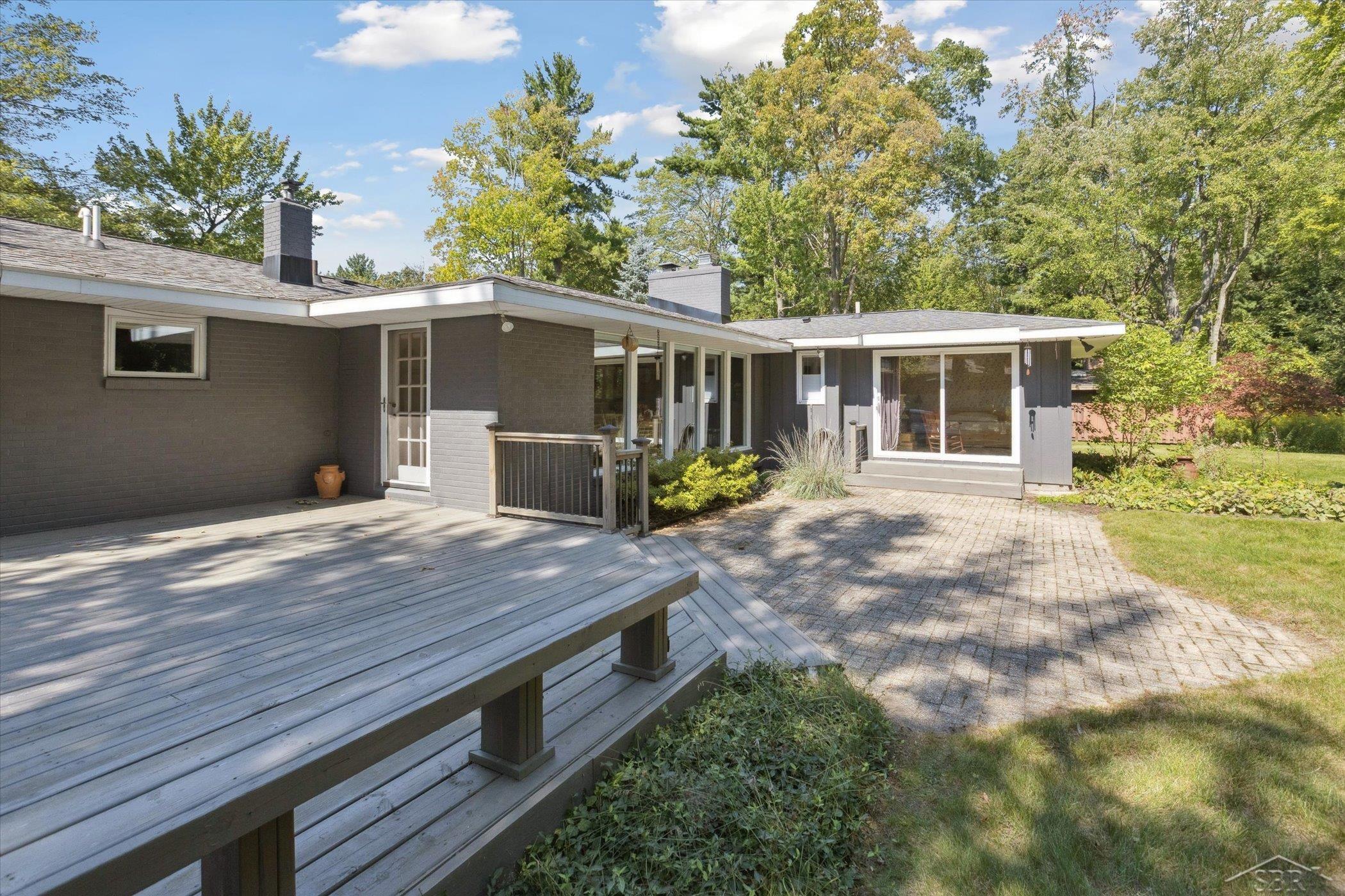 Sprawling ranch home on over half an acre in the heart of Midland—just a short walk to area schools! Sprinkled with mid-century modern charm, this home showcases warm wood details and thoughtfully placed windows that allow for abundant natural light while maintaining the privacy you desire. The kitchen features granite countertops, high-end appliances, and a cozy dining area accented by a gas fireplace, creating an inviting space for gatherings or quiet mornings. The expansive living room offers floor to ceiling windows that allow for wildlife viewing and includes the home’s second gas fireplace for added ambiance. New white oak wood flooring has been installed throughout, giving the home an updated flow. Further updates include upgraded electrical with overhead lighting, a new gas fireplace in the living room, and a whole-house generator—bringing both style and peace of mind. Step outside to enjoy your deck overlooking a private backyard filled with wildlife. A second 24'x24' garage offers additional storage or workshop space, perfect for hobbies or projects. With class, charm, and natural beauty all wrapped up in a wonderful Midland neighborhood, this home truly offers the best of both worlds—comfort and modern-day amenities right in Midland! One year home warranty is included.