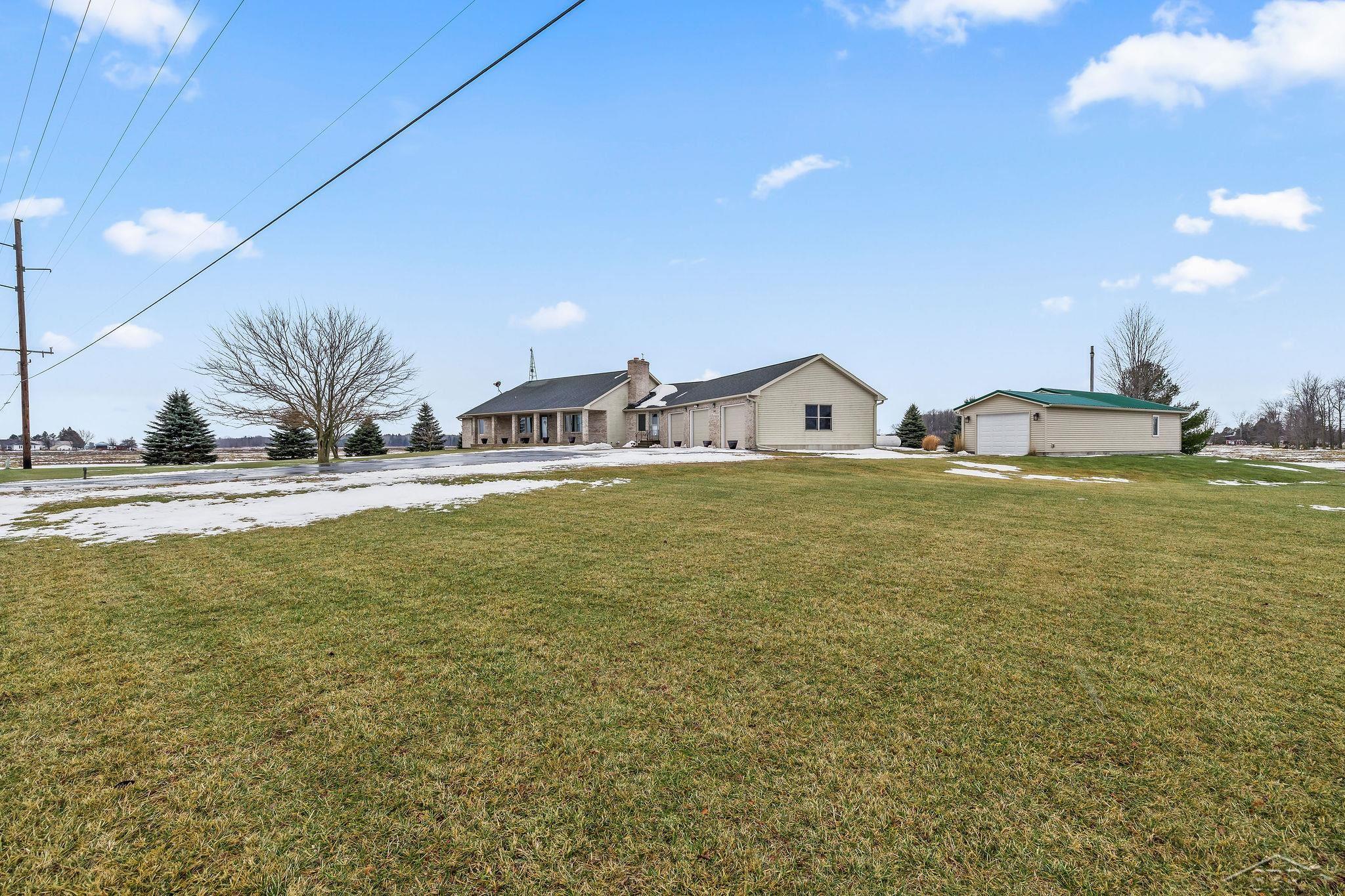 A property that truly offers space, versatility, and convenience. Set on 2.29 acres, this sprawling 3-bedroom, 2.5-bath ranch features more than 2,600 square feet of main-floor living, plus an additional 2,200 square feet in the basement. The layout includes expansive rooms throughout, including a large family room just off the attached garage—ideal for everyday living or gathering space. The bright white kitchen provides abundant workspace and flows into a spacious eat-in dining area. The living room features a fireplace, creating a welcoming focal point. Main-floor laundry is conveniently located near al bedrooms. The primary suite includes a fuly remodeled bathroom designed with accessibility in mind, featuring a low-profile shower, an accessible-height commode with grab bars, an accessible vanity, and a nicely finished walk-in closet. Windows throughout the home have been replaced, adding to the home’s efficiency and comfort. The home is also equipped with a Generac whole-house generator, providing peace of mind year-round. Boiler was new in 2017. Central air was also added. The basement adds excelent functionality with a Bilco door providing direct access to the backyard. Outdoor living includes a patio overlooking the private setting. In addition to the 3-car attached garage, the property includes a 24x24 heated and air-conditioned workshop—ideal for hobbies, storage, or additional workspace. Enjoy an “up north” feel without the long drive. Located just minutes from Pinconning, Standish, local gaming, and the blue waters of Lake Huron, with an easy commute and I-75 only 5 miles away.